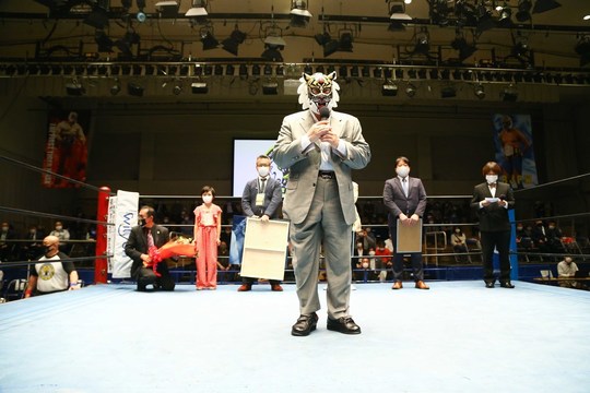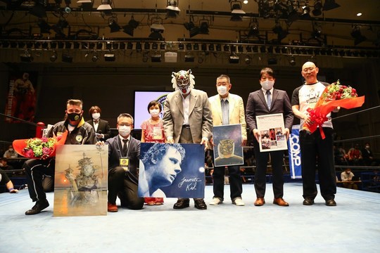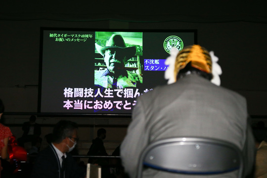 1981年4月23日、蔵前国技館でのダイナマイト・キッド戦でデビューした初代タイガーマスク選手の40周年記念興行第1弾となった同大会では、第3試合後に記念セレモニーが行われました。