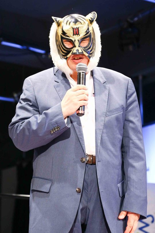 同大会には初代タイガーマスク 佐山聡名誉顧問も来場し、リング上からご挨拶。本日のタイガーサポーターズマッチのコンセプトである「道場マッチ」がタイガーマスクの原点だったと振り返りながら、「これからの素晴らしい選手が生まれてくるので、よろしくお願いします」と呼びかけました。さらに7・29後楽園大会でのデビューが決定した女性版タイガーマスク「タイガークイーン」にも言及。「皆さんに保証します。素晴らしい選手。皆さん温かい気持ちで彼女を応援してください」とアピールしました。