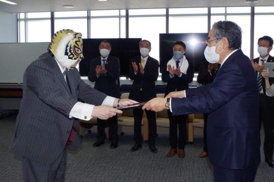 初代タイガーマスクこと佐山聡名誉顧問、新間寿代表理事が27日、栃木県真岡市役所および真岡警察署にてそれぞれ開かれた表彰式に出席。真岡地区暴力団追放対策協議会、真岡警察署より感謝状をいただきました!