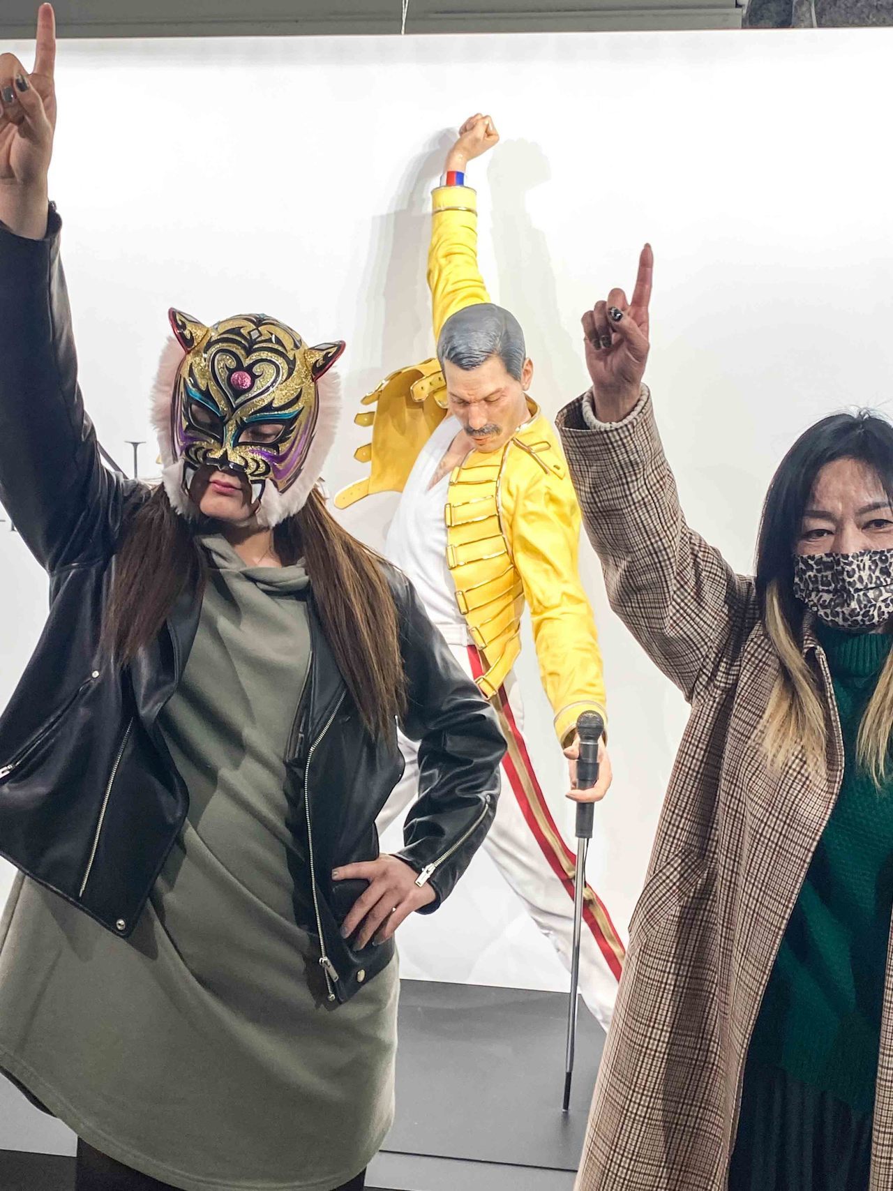 タイガー・クイーン選手と、TQアドバイザー・ジャガー横田選手が31日、東京・西武百貨店渋谷店特設会場で行われている『QUEEN50周年展-DON’T STOP ME NOW-』を訪れ、TQ選手の入場曲「DON’T STOP ME NOW」の世界を体感しました。