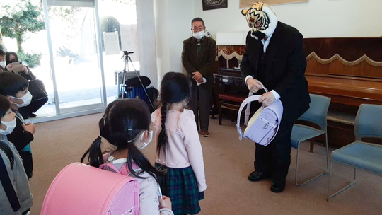 一般社団法人初代タイガーマスク後援会は2月26日、この春に小学校に入学する養護施設児童11名にランドセルを贈呈。また神奈川県内の母子寮に入居する児童を対象に12個のランドセルをお贈りしました。