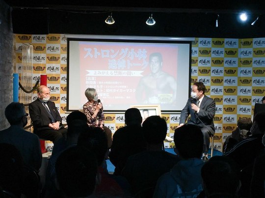 同イベントは、1974年3月19日、昭和の巌流島決戦とも称された歴史的一戦「ストロング小林vsアントニオ猪木」をプロデュース・実現させた“過激な仕掛け人”新間代表理事が「小林さんの偉業を1人でも多くのファンに伝えたい」と希望し、開催に至ったもの。新間代表理事と特別ゲストの初代タイガーマスクが当時の知られざるエピソードを語れば、家族代表としてご参加いただいたストロング小林氏実妹の小林さち子さんは、家庭での「怒涛の怪力伝説」を披露。満員御礼となった会場は大いに盛り上がりました。