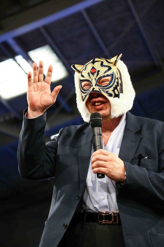 初代タイガーマスク来場!!リング上から皆様にご挨拶しました