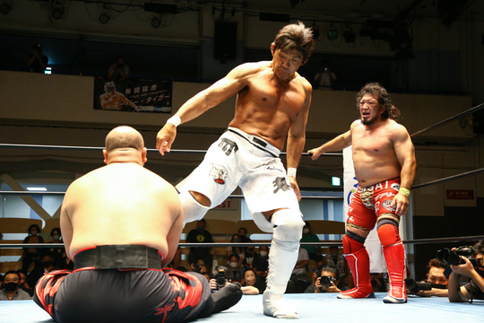 間下&日高郁人vs入江茂弘&大和ヒロシは、間下&日高組のチームワークがキラリと光り、前評判どおりの好試合に。間下選手が大和選手をきっちり料理し、場内は大盛り上がりとなりました。