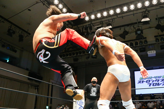 試合後、すぐにS・タイガー選手のセコンドについていた間下隼人選手がレジェンド王座挑戦に名乗り。真霜選手は“間下選手がS・タイガーより強いことを証明”したとき、挑戦を受けると返答しました。