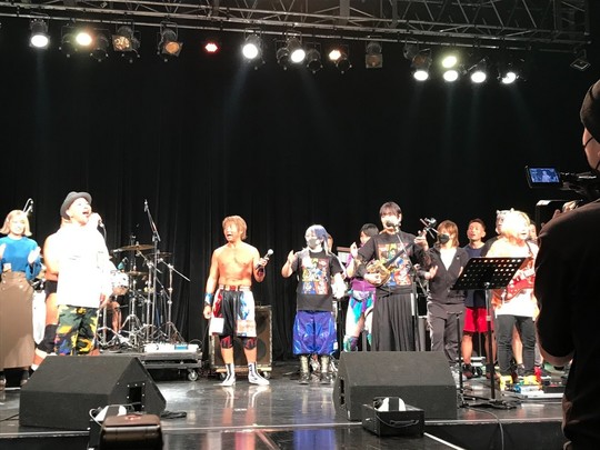 お祭りは日高選手の妻で歌手のあびこめぐみさんらによるライブなど音楽あり、豊田真奈美さんのトークショーなどイベントあり、そして本日の主役・日高選手らによるプロレスありと盛りだくさん。