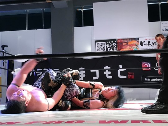 白熱のミックスドマッチはジャガー横田選手が洞口選手から3カウント。京子選手、間下選手がバックステージに引き上げたのち、リングに残った洞口選手がCRYSISへの加入を希望しました。ジャガー横田選手は突然のことに驚きながらもこれを受け入れ、洞口選手のメンバー入りが濃厚となりました。