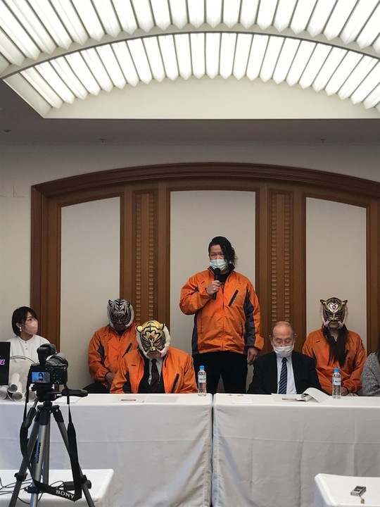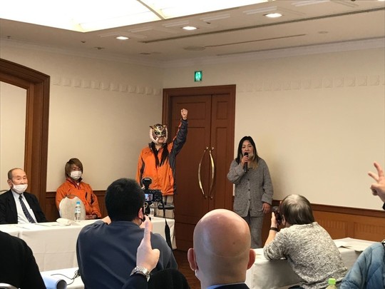 一般社団法人初代タイガーマスク後援会が応援する、初代タイガーマスク主宰『ストロングスタイルプロレス』が1月26日、2・22後楽園大会へ向けた会見を都内で実施。初代タイガーマスク、新間寿代表理事ほか、出場選手が出席しました。