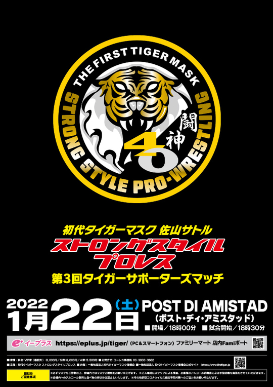 一般社団法人初代タイガーマスク後援会がサポートする「ストロングスタイルプロレス」の『第3回タイガーサポーターズマッチ』が1月22日、神奈川・POST DI AMISTAD(旧フォレスト幸洋)で開催され、寅年・年男の間下隼人選手が2022年初興行の主役をさらいました!