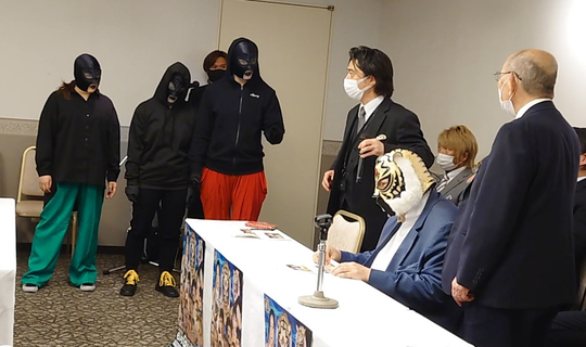 | ◆2022/6/2 | 黒獣覆面集団現る……TQ選手に宣戦布告! 6.9後楽園へ会見 |