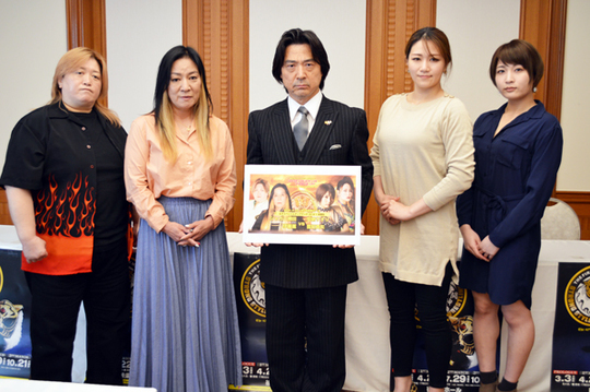 4月16日(木)、ホテル・ルポール麹町にて初代タイガーマスクストロングスタイルプロレスが記者会見をおこない、4・22東京・後楽園ホール大会の全対戦カードを発表するとともに、女子スペシャルタッグマッチに出場する4選手が登場、試合への意気込みを述べた。
