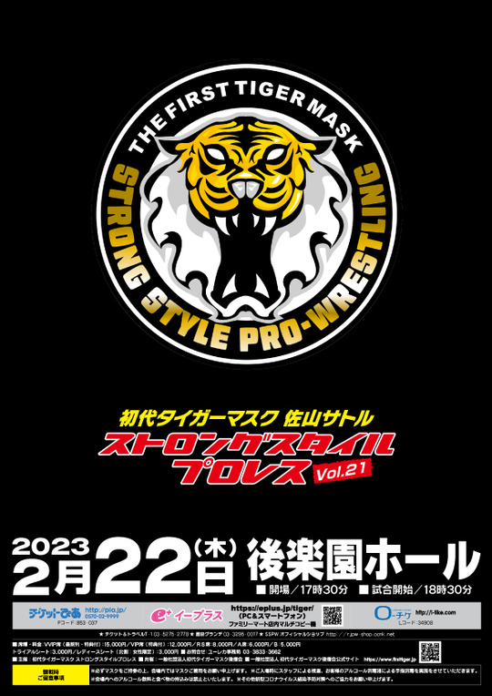 | ◆2023/1/13 | 【SSPW】初代タイガーマスク ストロングスタイルプロレスVol.21大会詳細 |