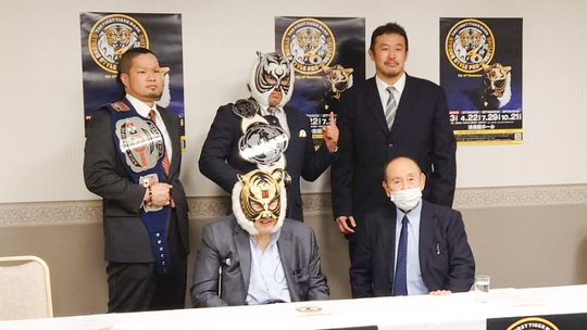 一般社団法人初代タイガーマスク後援会が応援する、初代タイガーマスク主宰『ストロングスタイルプロレス』が10月14日、10・21後楽園へ向けた会見を都内で実施しました。