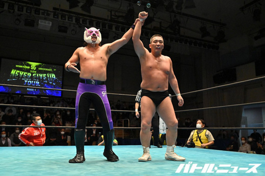 | ◆2021/12/2 | TQvsライディーン鋼、スーパーvs間下レジェンド王座戦 12・9新宿へ会見 |