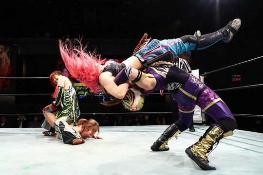 〇タイガー・クイーン&彩羽匠(14分11秒、タイガースープレックスホールド)梅咲遥&マドレーヌ●