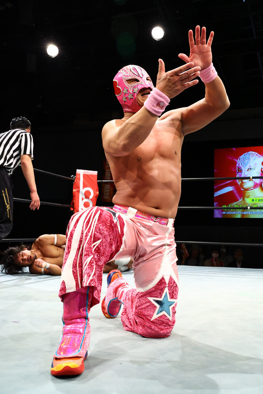 〇めんたい☆キッド(9分59秒、めんたいスプラッシュ→体固め)大和ヒロシ●