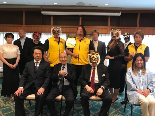 一般社団法人初代タイガーマスク後援会が応援する、初代タイガーマスク主宰『ストロングスタイルプロレス』が8月22日、都内で会見を実施し、初代タイガーマスク、新間寿代表理事、間下隼人ら各選手が出席。第1部では『初代タイガーマスクNFTプロジェクト』の発表されたほか、第2部はSSPW8・31後楽園へ向けて出場各選手らが意気込みを語りました。