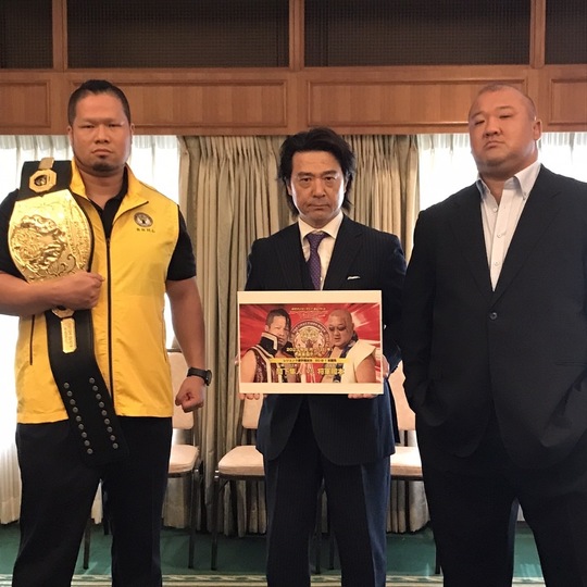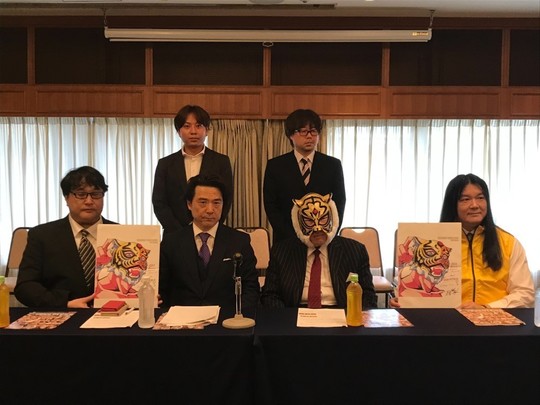 このほかスーパー・タイガー選手は船木誠勝選手と組み、関本大介&宮本裕向組と、日高郁仁選手は阿部史典選手とのコンビで政宗&チェック島谷組と対戦が決定。会見にはスーパー選手、宮本選手、日高選手、政宗選手が出席し、試合にかける思いを語りました。