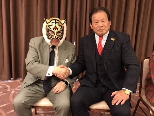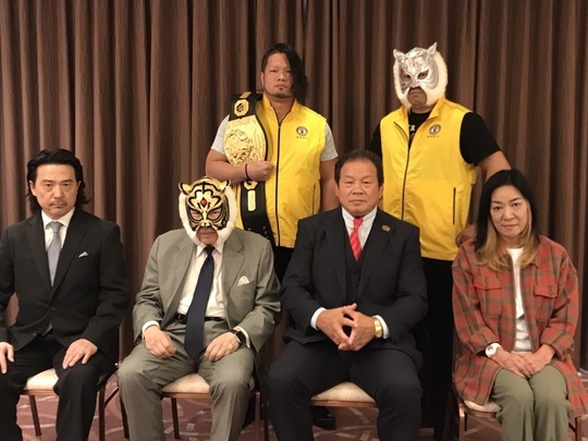 一般社団法人初代タイガーマスク後援会が後援する、初代タイガーマスク主宰『ストロングスタイルプロレス』の10・30新宿大会へ向けた会見が都内で開かれ、初代タイガーマスク、同大会に参戦する藤波辰爾選手、ジャガー横田選手らが出席。大会への意気込みを語りました。