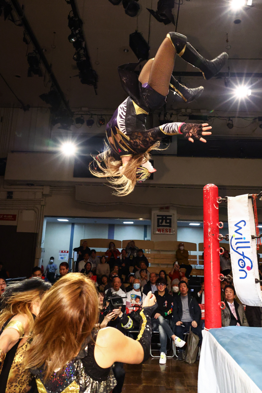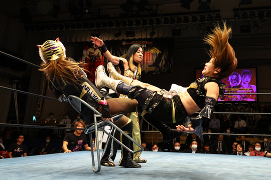 このほか日高郁人&阿部史典vs宮本裕向&佐藤光留の注目タッグ対決、ダーク・チーター櫻井雄幸、尾崎妹加vs石川奈青なども行われ、いずれも熱戦に。年内最終戦は大盛況で幕を閉じました。