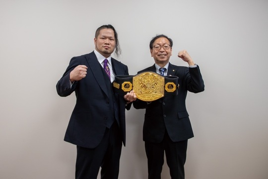 また中西副町長には、レジェンド王座の長期防衛を約束。宣言どおり、12・7後楽園での関根“シュレック”秀樹選手とのレジェンド王座戦に勝利し、ベルトを防衛しています。