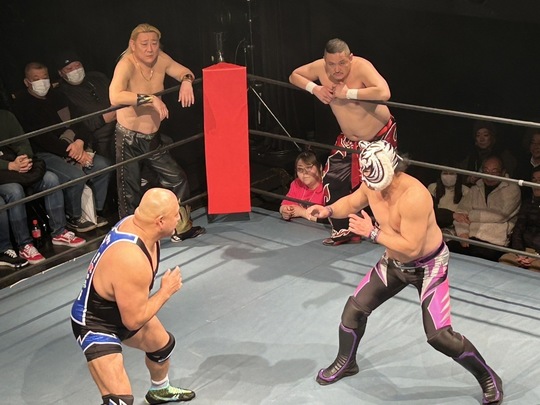 ○アレクサンダー大塚&間下隼人&三州ツバ吉(12分42秒、ジャーマンスープレックスホールド)スーパー・タイガー&山本SAN&●浦野裕太