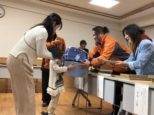 贈呈式ではピカピカのランドセルほか、お菓子セットもプレゼント。ランドセルの色はあらかじめ後援会がアンケートを取り、子どもたち一人ひとりの希望色をご用意しております。神奈川県社会福祉協議会様より感謝状を、施設代表として川崎市母子生活支援施設「ヒルズすえなが」施設長の中鉢様より感謝のお言葉をいただき、そして最後に今回の贈呈式にご尽力いただいた社会福祉法人久良岐母子福祉会の長井理事長からのご挨拶をもって、式は無事に終了しました。