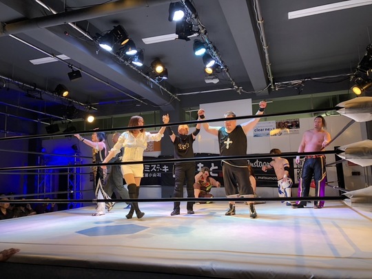メインイベントは、ジャガー横田&新井健一郎&ガッツ石島&VENYのCRYSIS軍と、間下隼人&柊くるみ&雪妃真矢&神崎ユウキ組の8人タッグマッチが組まれました。60分3本勝負となり、2本先取したチームが勝利となります。1本目はSSPWのレジェンド王者・間下選手が取ったものの、2本目・3本目はCRYSIS軍が連続奪取。CRYSIS軍は全試合勝利という結果で、大会の幕が下りました。