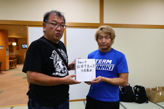 一般社団法人初代タイガーマスク後援会は9月14日、石川県七尾市内で開催された能登地震復興促進イベントに参加。SSPW提供2試合の後援、チャリティ販売グッズの提供などでイベントを支援し、被災地に笑顔を届けました。