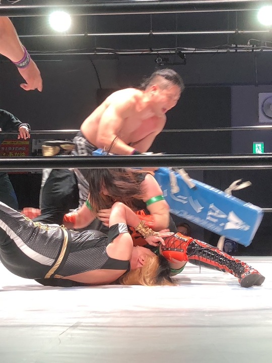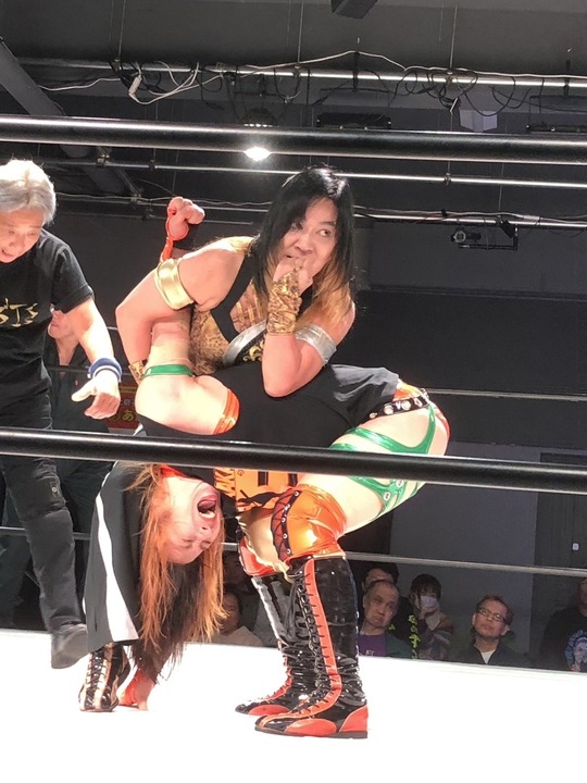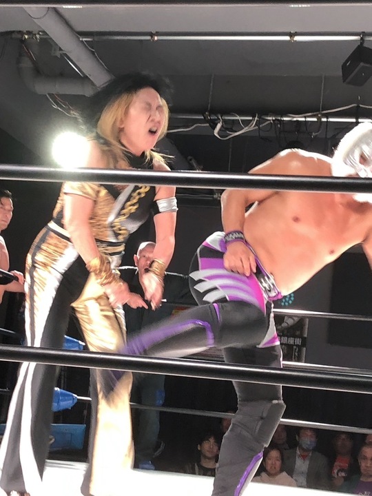 この日もクライシス軍は、リング上は無法とばかりに凶器攻撃や介入などやりたい放題の大暴れ。S・タイガー組も持ち前のパワーや鋭い打撃で食い下がりましたが、狡猾に立ち回るクライシス軍を止めることができず、最後までジャガー横田選手組が主導権を握り会場を沸かせました。