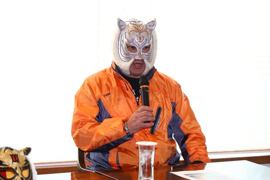 また本日の会見では、S・タイガー選手が1日警察署長を務めることもアナウンスされました。これまで初代タイガーは幾度となく1日警察署長も行ってきましたが、S・タイガー選手は初めてとなります。同日は交通安全パレードも実施予定で、S・タイガー選手は「交通安全をアピールしたい」と意気込みました。
