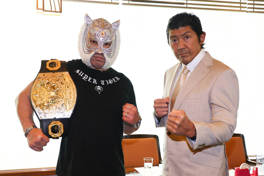 一般社団法人初代タイガーマスク後援会が後援するストロングスタイルプロレスが28日、3・13後楽園大会へ向けた会見を都内で実施。同大会でレジェンド王座をかけて戦う王者・スーパー・タイガー選手と挑戦者・船木誠勝選手が決戦へ向けた意気込みを語りました。