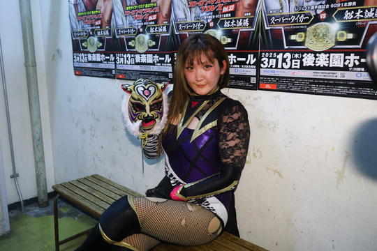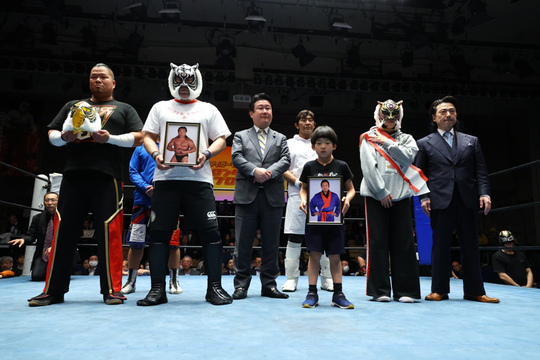 試合後、普段は見せないとびきりの笑顔で喜びを表現した船木選手は、この日体調不良で欠席となった初代タイガーマスクが元気になり、リングに戻るその時まで、ベルトを守り抜くと宣言しました。