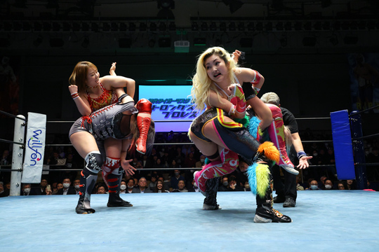 このほか日高郁人&阿部史典vs政宗&アンディー・ウーのジュニアタッグマッチなど内容盛りだくさん。第1試合で行われたシングルマッチで、SSPW女子タッグ王者である藪下恵選手に勝利したDASH・チサコ選手はジャガー&藪下組が持つタッグベルトへの挑戦を宣言しました。