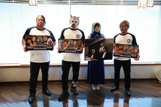 一般社団法人初代タイガーマスク後援会が後援するストロングスタイルプロレスが3日、6・12後楽園大会へ向けた会見を都内で実施。同大会は、4月21日に逝去した当後援会代表理事である“過激な仕掛け人”、故・新間寿さんの追悼興行となり、第4試合後に追悼セレモニーが行われます。会見には、初代タイガーマスク、スーパー・タイガー選手、間下隼人選手、日高郁人選手、MIRAI選手が出席しました。