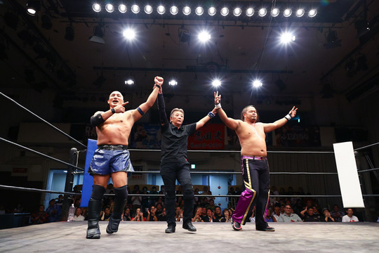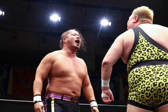 SSPWからは間下隼人選手が登場。SSPWでもおなじみの槙吾選手とのコンビで、ガッツ石島&神崎ユウキ組と対戦しました。間下選手は、石島選手のパワーと神崎選手のハイスピードに押される場面もあったものの、槙吾選手との好連係で流れを引き寄せ、最後はタイガースープレックスホールドで神崎選手を沈めました。