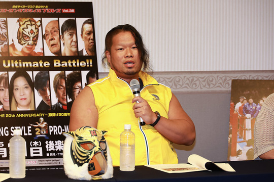 スーパー・タイガー選手は竹田誠志選手とのコンビで、村上和成&川村亮組と対戦。スーパー選手は「この試合何を意味するのか。真の部分を見せていきたい」と力強く語りました。