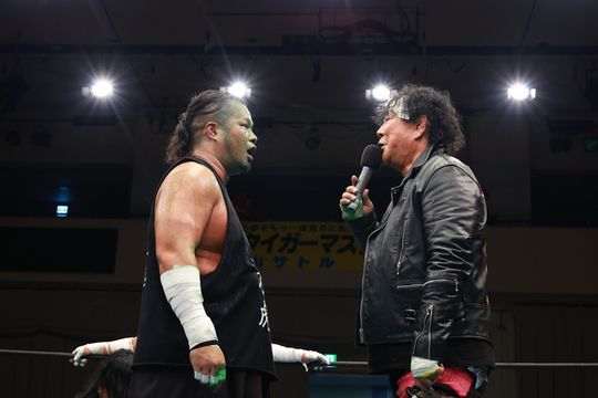 船木選手が去った後、黒潮選手はマイクで間下選手らを挑発。すると関根“シュレック”秀樹選手が王座挑戦に名乗りを上げましたが、黒潮選手は「『人間』の挑戦を受けると言っただけだ」と怪物の挑戦を拒否してバックステージへと消えていきました。なお、船木選手はリングドクターによって応急処置を受けたのち病院を受診。現状は大きな問題はなく、今後精密検査を受ける予定です。