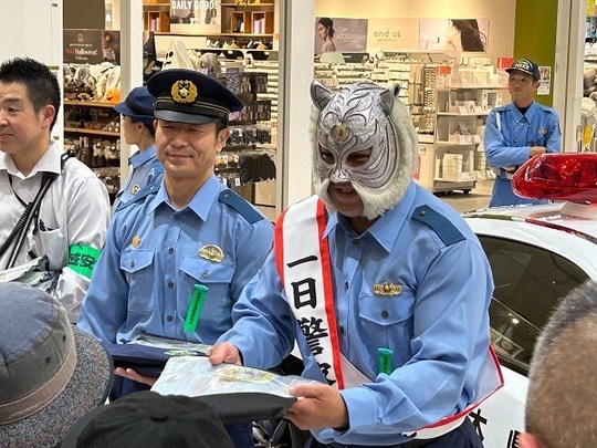 一般社団法人初代タイガーマスク後援会が後援する、初代タイガーマスク佐山サトル主宰「ストロングスタイルプロレス」所属のスーパー・タイガー選手が、10月11日に栃木県佐野市での地域安全運動に“電撃参戦”。同県佐野警察署の「一日警察署長」に任命され、防犯を呼びかけました。