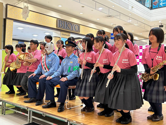 防犯イベントで演奏を披露した佐野日大中学・高校吹奏楽部の皆さんと