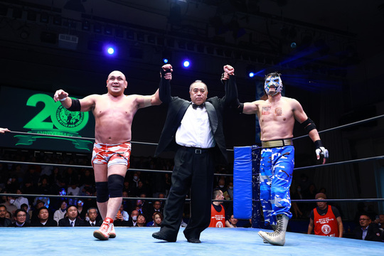 一般社団法人初代タイガーマスク後援会が後援する、初代タイガーマスク佐山サトル主宰「ストロングスタイルプロレス」が12月4日、東京・後楽園ホールにて開催されました。団体20周年記念イヤー最終試合となった同大会は、チケット完売・超満員御礼の大盛況に。豪華全7試合はいずれも熱戦となり、大熱狂のうちに幕を閉じました。