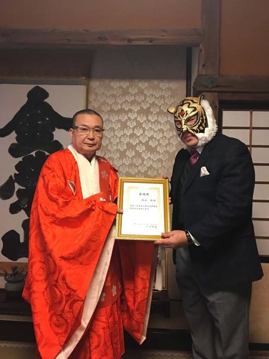 感謝状進呈式は、イジメ撲滅講演会開催やインド・ブッダガヤとの交流イベントなど、多大なご協力をいただいております妙成寺様で行われ、佐山聡名誉顧問、新間寿代表理事らが感謝状を受け取りました。また、寺の国宝指定などを後押しする奉賛会理事の大役を仰せつかりました。