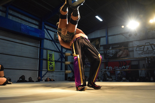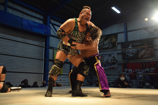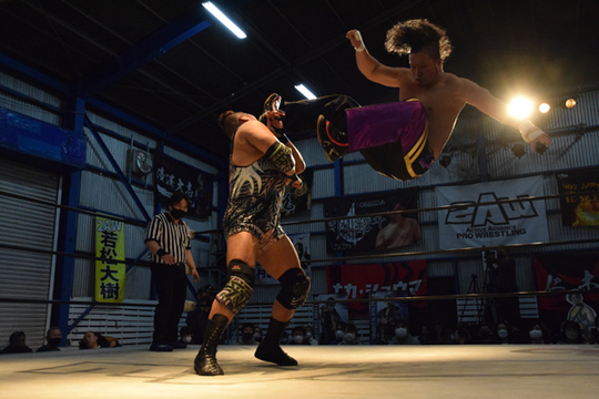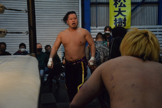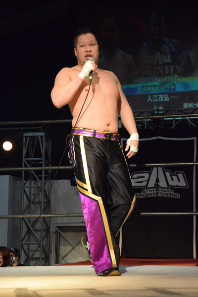 ○間下隼人[9分49秒、顔面蹴り→片エビ固め] vs 若松大樹●vs 入江茂弘
