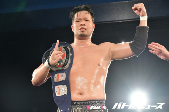「終わってみればこうして勝ったという結果は残りましたけど、僕は“生え抜き”という言葉にこだわっていて、やっぱり今、どの団体さんでも生え抜きっていうのは死語になってきてると思うんですけど、この団体で生まれ育った僕は、横山選手もVOODOO-MURDERSですけど、ZERO1で育って、ZERO1でどんどん強くなっていって、今ちょっと(道を)間違えているかも知れないけど、彼も生え抜きだと思っています。だから生え抜き同士の意地という部分がこのベルトの勝ちを高めていくと思うので、前回ちょっと巻いてしまったんだけど、僕はこのベルトを、佐山先生が……初代タイガーマスク・佐山サトルが戻ってくるまで腰に巻かず、先生が戻ってきたときに『間下よく頑張ったな。もう腰に巻いていいぞ』と言われるまでは肩に掛け続けたいと思います。それまでは誰でもいいです。横山もう一回でもいいです。防衛していきます。ありがとうございました!」
