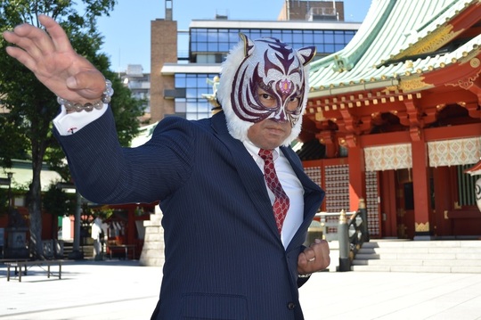 新間寿会長「昔から言われるように、江戸っ子というのがいました。江戸っ子? オレは神田の生まれよと。神田と言えば江戸っ子。江戸の代名詞というのが神田。私は野村胡堂という作家の『銭形平次』を愛読しておりました。銭形平次は神田の生まれでございました。そして、天国と地獄があって、閻魔大王が現世に出てきて人々に教えを説くときはお地蔵さまになる。お地蔵さまとなって、そしてその地蔵さまがいろんな人々に形を変え、そして言葉を換えて多くの人々にいろんなことを問いかけ、そして自分自身がいま置かれている立場を多くの人々に見せて、その人々の対応を見て勧善懲悪を果たしたという、私ども子どもの時代にはそういう物語がいっぱいありました。『桃栗三年柿八年、柚子は九年で花が咲く、梨の大馬鹿十八年』。このタイガーマスクのお守りを持つことによって、桃栗三年、3年で理解できた人。そして柿八年、柿になって8年目で理解できた人。柚子は九年で花が咲く、9年で理解できた。梨だけは、オマエは本当に大馬鹿だ、18年かけなければ理解できないと。それを18年かかる人が11年、9年になる、8年になる。プロレスと一緒です。10分1本勝負の人間が15分1本勝負に昇格し、20分1本勝負から30分1本勝負に。特別試合30分1本勝負がセミファイナルになってメインイベンターになった。そういう気持ちを持たす、そういう気力を持たすのは、このタイガーマスクのお守りでございます。私はこのお守りが、平井が神田明神さまとご一緒に作り上げるという話を聞いて、私も気力が沸きました。10日間、実家を出ましてある場所で私は毎日トレーニングをいたしました。8泊9日でやった回数が、3500回。腕立て伏せから腹筋、ヒンズースクワット。そういう気力を持つというのがタイガーマスクと一緒に私はこれからも神田明神と、神田明神というのは平将門をお祀りしている。この磁力の優れた平将門を守護神として持っている神田明神、ここでタイガーマスクがコラボして、そして私たちが気力がなくなっているいま、(新型)コロナ(ウィルス)のこの時代にお守りが出るという、本当にタイガーマスクの力であります。タイガーは何百万人にひとりではありません。何千万人にひとりしかいない、それだけの力を持った男です。私はこのお守りを多くの人に持ってもらいたい。『桃栗三年柿八年、柚子は九年で花が咲く、梨の大馬鹿十八年』。これをひとつひとつクリアーしてこれを持つことによって、タイガーマスクを思うことによって、神田明神をお参りすることによって、自分自身の気力が充実していくという、このお守りをまずプロレスマスコミのみなさまに持っていただいて、ひとりでも多くの人たちに対し、6月、7月、8月のタイガーマスクと神田明神さまがおこなうこのコラボに是非参加していただいて、ひとりでも多くの人に知らせてもらいたいと思います」