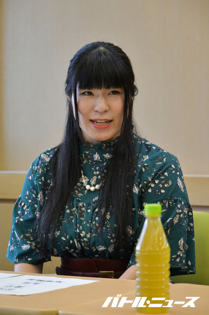 松本都「崖のふち女子プロレス代表、プロレスラー松本都です。前回、ご縁がありまして3月の後楽園ホール、RJPWさんの15年の歴史で初めての女子プロレスの試合を組ませていただきました。私はちょっと正直、RJPWさんのカラー的に女子の試合っていうのは受け入れられなくてもしょうがないかなっていう、ちょっと自信のない部分があったので、前回あんなに盛り上がるとは思わなかったし、女子プロレスもすごい世界に羽ばたけるなって日本の女子プロの可能性をすごく感じました。今回こうやって2回目の開催を決めていただけたのもそれの表れだと思うので、本当に嬉しいです。新間会長、佐山さん、平井さん、本当にありがとうございます。お礼を言いたいです。前回は女子プロの素晴らしさを伝えられたと思いますので、今回はよりRJPWさんのカラーというか、15周年ということで、試合内容、華とかももちろんですけど、試合内容で魅せられる選手を選ばせていただきました。すごいいい人に揃っていただけたと思います。まず、朱里選手、MAKAIですね。前回に引き続きです。でも、平井代表直々のご希望もありましたけど、私は、朱里選手はちょっと正直、ちょっとイヤで(苦笑)。なぜかと言うと、前回すごく頑張ったのに朱里さんに負けてしまって、マスコミの方も朱里さんばっかりに行って、ニュースで『RJPWに女子のベルトを作りたい』とか言ってたのが、すごくイヤで私は。それは私が言うセリフだと思ってイヤだったので、それで敢えて対角に彼女を置かせていただきました。彼女に華は持たせません。ハイ。そしてパートナーは、プロレスリングEVEの優宇選手ですね。嬉しいです。一回、前にいらっしゃった団体で試合を見させていただいて、本当に女子の中で貴重な強さを追求できる。身体とかを見ていただければわかると思うんですけど、すごい貴重な素敵な選手で、いつか一緒にやりたいと思っていたので、今回初めて組めることがとても嬉しいです。そして尾崎妹加選手ですね、フリーです。彼女は、女子高生全国ウエイトリフティング三冠王者というとで、結構見た目はアイドルっぽいんですけど、スゴいんですよ。試合内容というかパワーも。これは試合当日まで内緒にしときたいですけど、本当に2人、男子選手とかも担いだりとか、本当にスゴイので、優宇ちゃんとのバチバチも見たいし。ということで、組ませていただきました。ハイ。本当に前回を超えるすごくいい女子プロを見せられると確信しておりますので、ご期待いただきたいです」