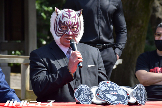 「ストロングスタイルプロレスのスーパー・タイガーです。今回まだまだ厳しい状況が続いている世の中ですが、プロレスをもって日本を、そして世界に発信して元気を届ける。そういった闘いをしっかりと見せていきたいと思います。他団体のチャンピオンの皆様、レスラーが集うこの大会、我々ストロングスタイルプロレスのモットーをしっかりと闘いの中で見せていきたいと思っております」